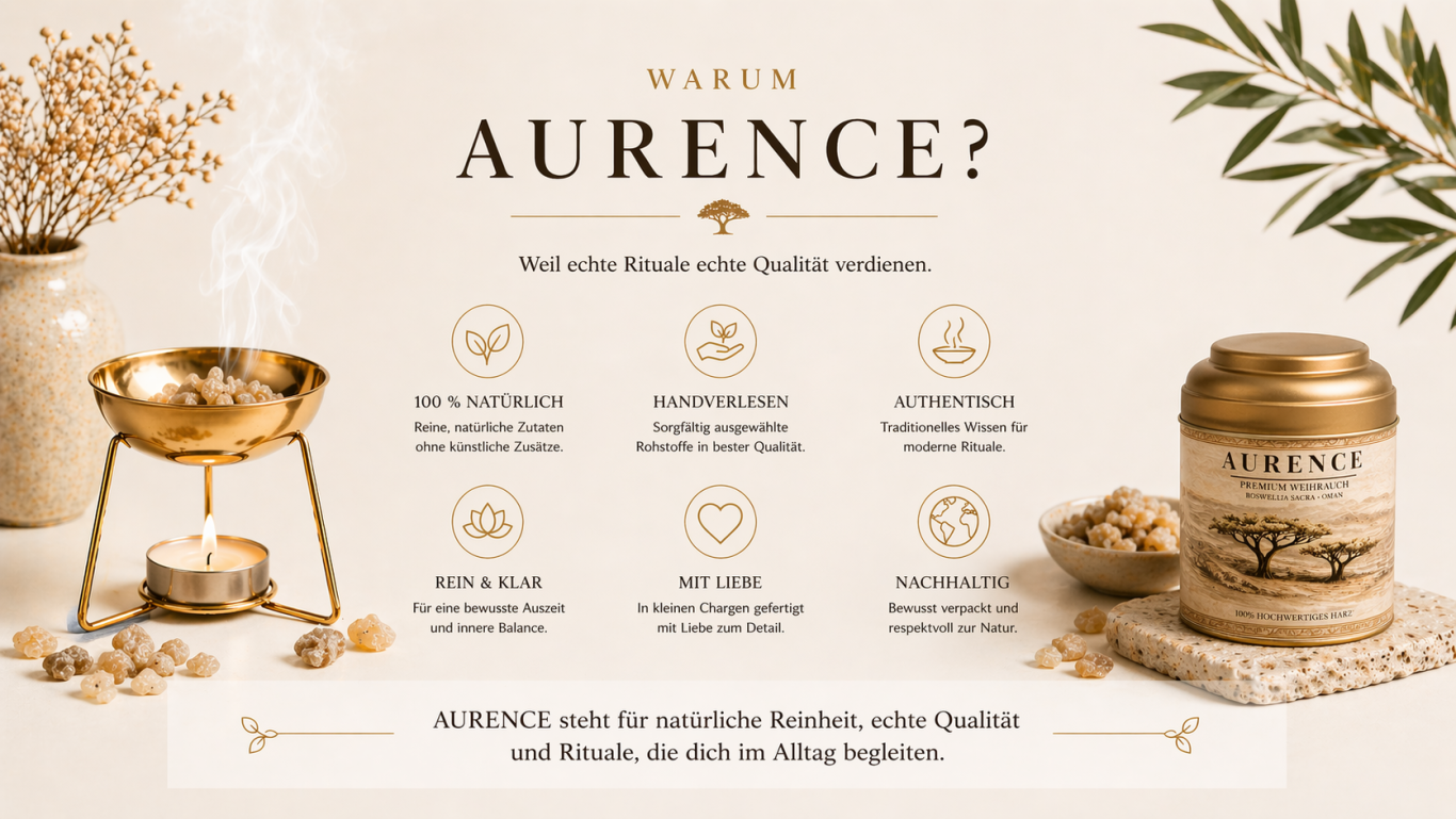 Unser sorgfältig ausgewähltes Boswellia Sacra Harz stammt aus den traditionsreichen Regionen Omans. Jede Charge wird in Deutschland geprüft, um Reinheit, intensiven Duft und höchste Qualität  sicherzustellen.